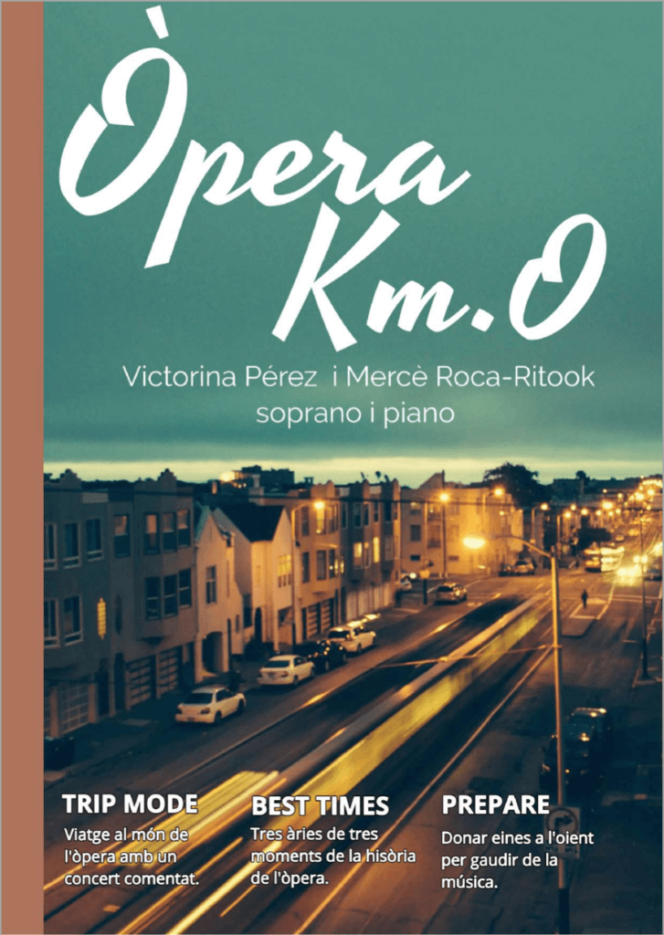 The most recent project is with the pianist Mercè Roca-Ritook: Ópera km.0, a concert of three opera arias that we explain first to the public. Three different moments in the history of music, three different themes, three composers, three musical styles and three characters. So the listener can better understand what is interpreted and I give wings to my humanist side. It is a very open concert in which we end up giving voice to anyone who wants to ask or express themselves.